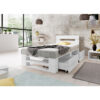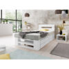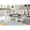 Łóżko zawiera 2 szuflady, które idealnie nadają się do przechowywania różnych przedmiotów. Szuflady wyposażone są w gumowe kółka, co sprawia, że są ciche w użytkowaniu i nie rysują podłóg. W razie potrzeby dodatkowe szuflady można zakupić w naszych pozostałych ofertach.