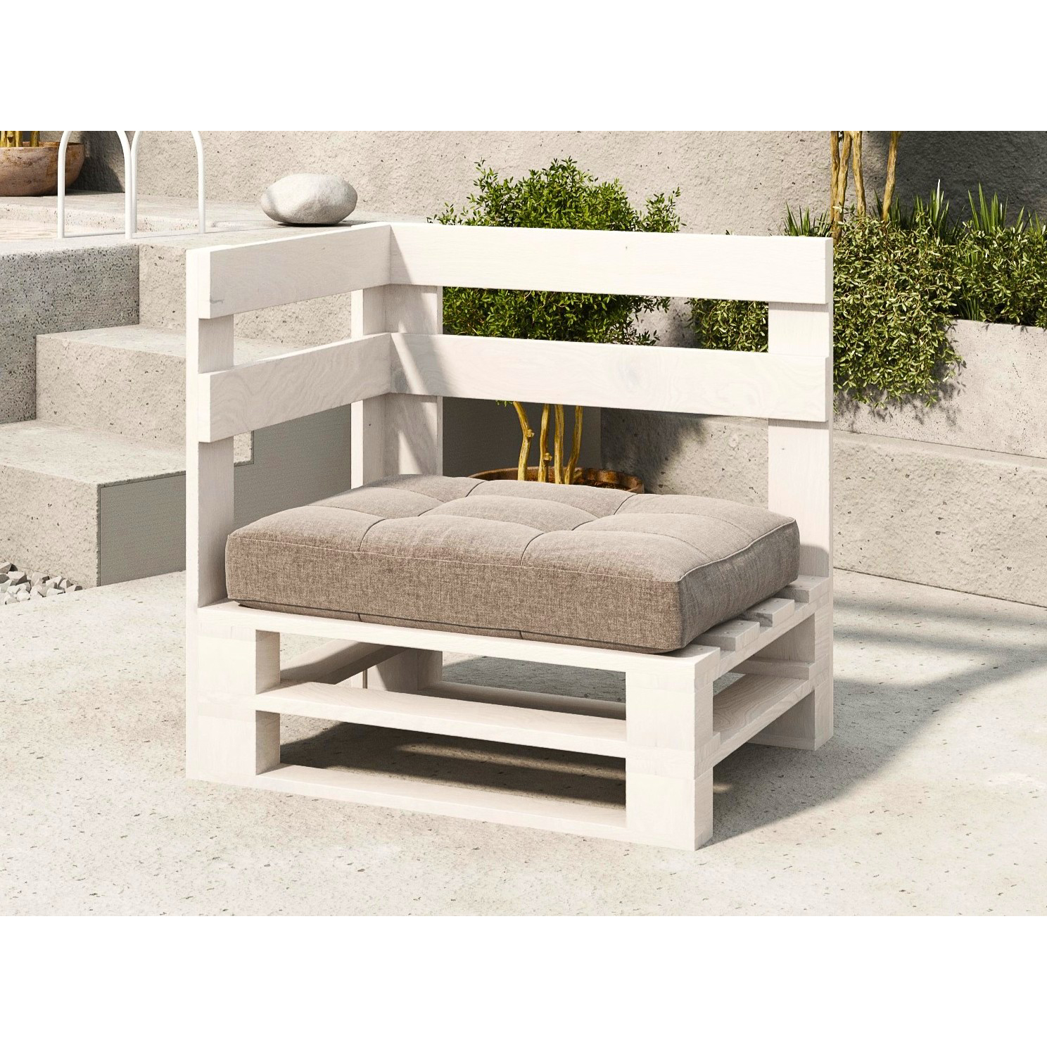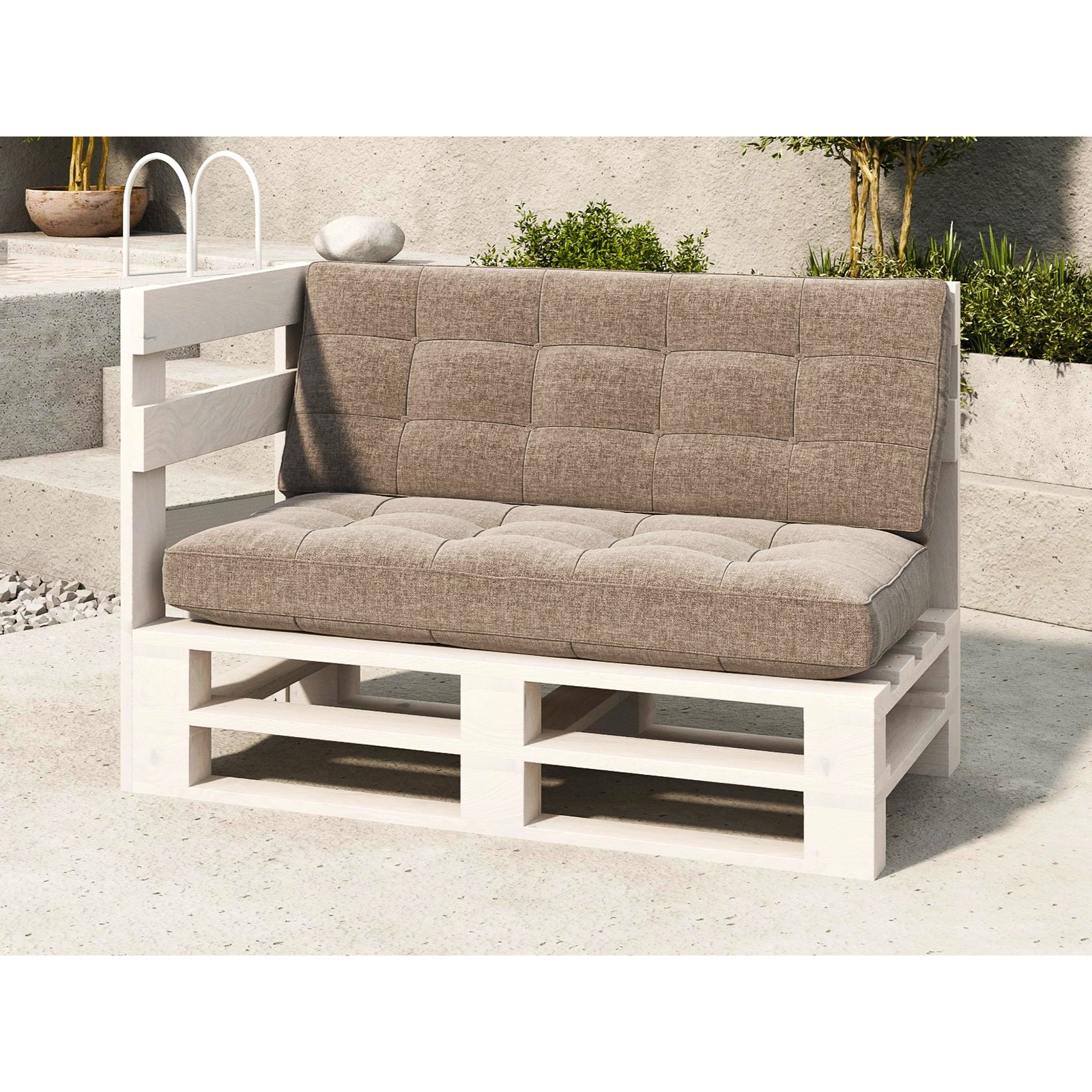 Narożnik z palet model MPE biały – nowoczesny narożnik ogrodowy z palet