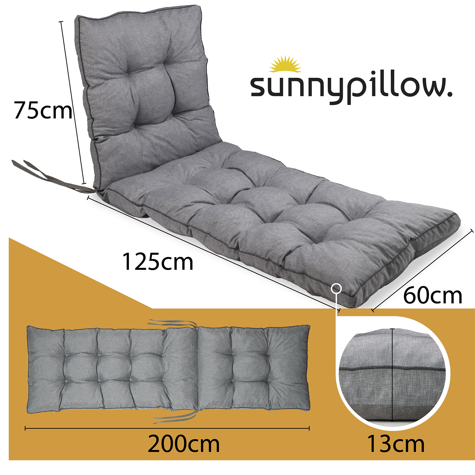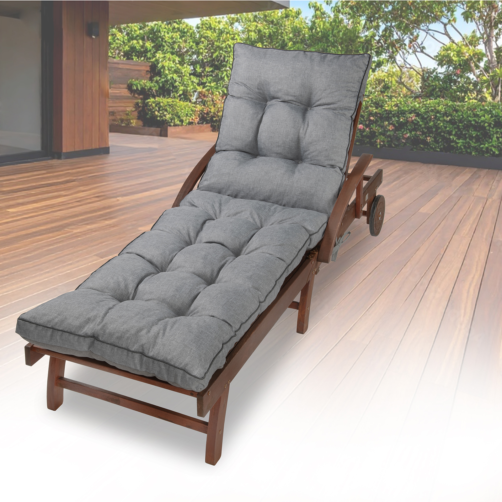 Poduszka pasuje do większości standardowych leżaków ogrodowych dostępnych na rynku.