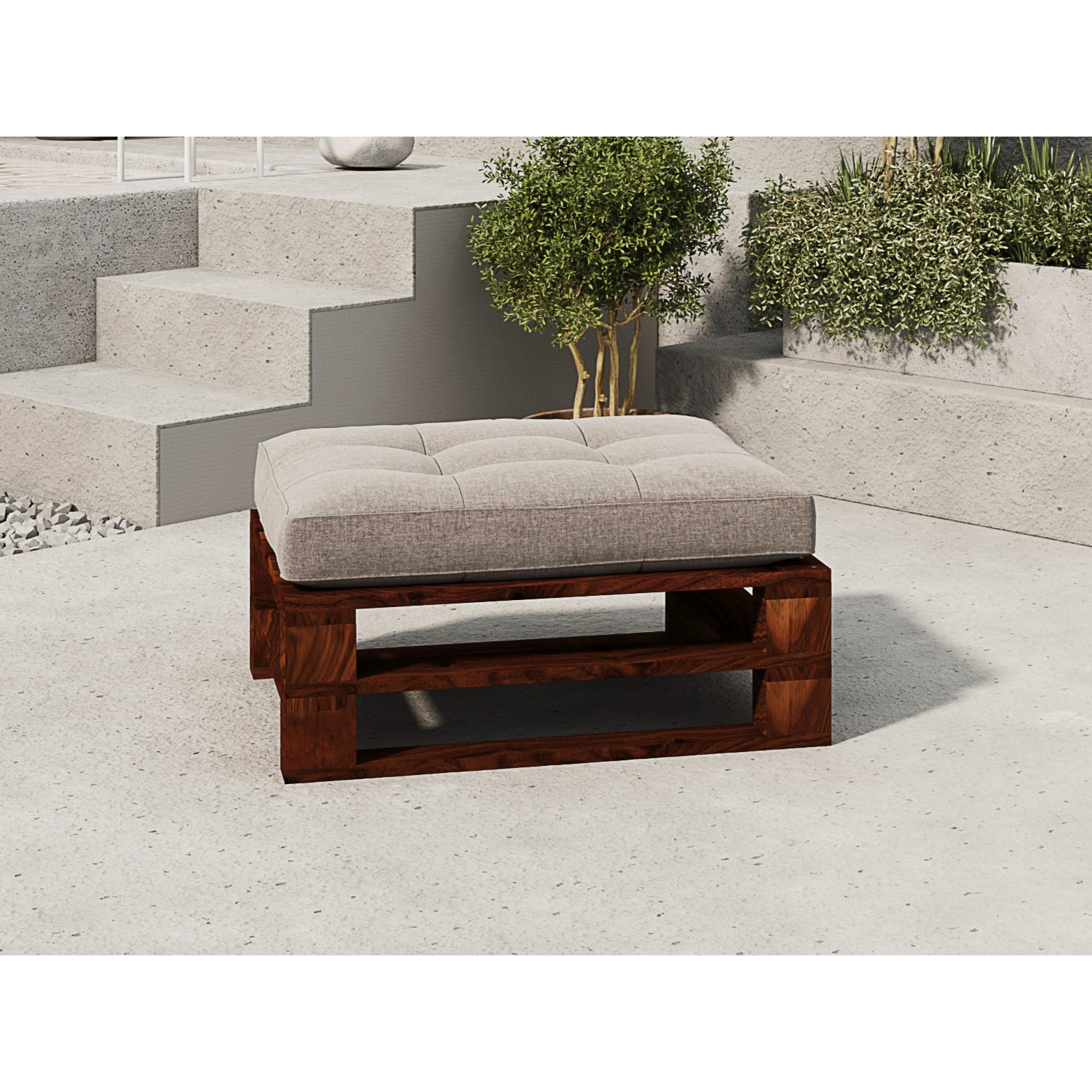 Pufa z palet model MPE palisander – elegancka drewniana pufa ogrodowa